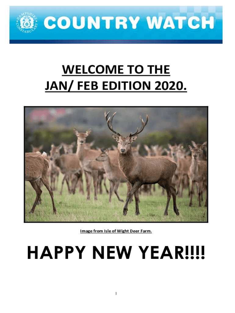 WELCOME TO THE JAN/ FEB EDITION 2020.Image from Isle of Wight Deer Farm.HAPPY NEW YEAR!!!! 1Firstly on behalf of the Country Watch Team we would like to wish you all a Happy New Year. We have decided