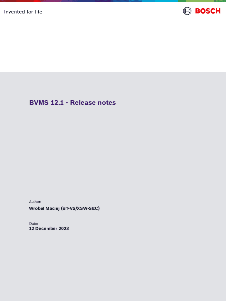 Get the free BVMS 12.1 - Release notes - Bosch Download Store