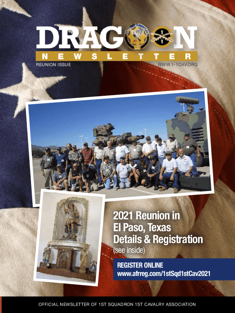 REUNION ISSUEWWW.11CAV.ORG2021 Reunion in El Paso, Texas Details & Registration (see inside)REGISTER ONLINE www.afrreg.com/1stSqd1stCav2021OFFICIAL NEWSLETTER OF 1ST SQUADRON 1ST CAVALRY ASSOCIATION20211st