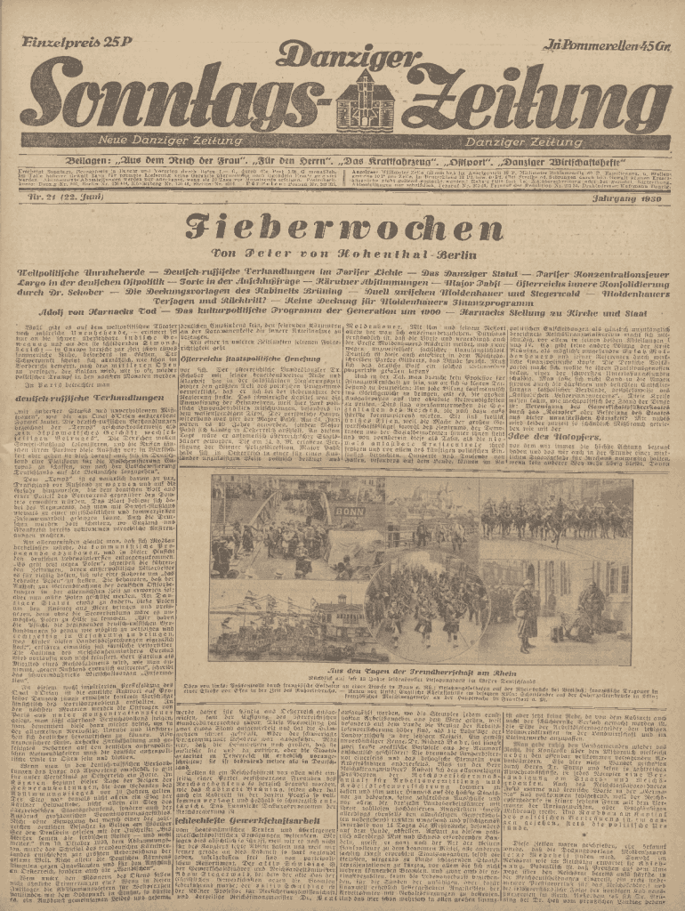 E in z e lp r e is 2 5 PJriPommeveUen45GKBeilagen: 3Iug Dem Cfteicp Oer grau\", ffilr Den fferrn\".,,3a$Erscheint Sonntags. Bezugspreis in Danzig und Vororten durch Boten 1, G, durch die Post 1,08