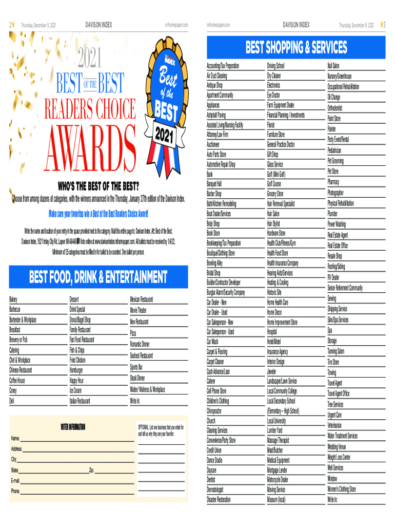 Get the free Best of the Best Ballot - The County Press - MiHomepaper