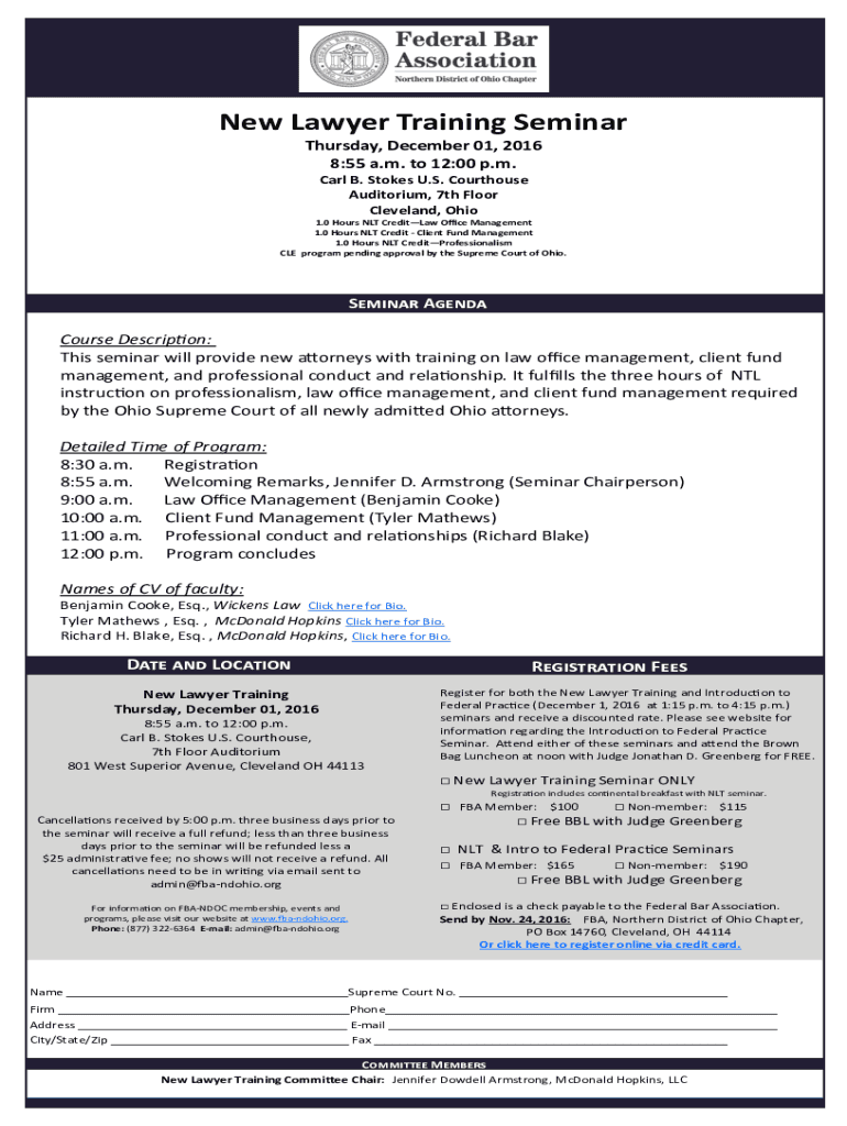 Get the free New Lawyer Training CLE Seminar & Introduction to Federal ...
