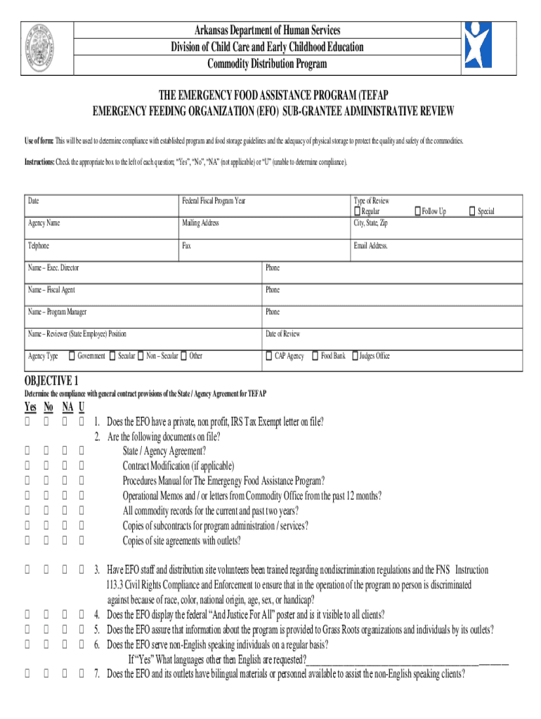 Get the free Commodity Supplemental Food Program (CSFP) Site Review