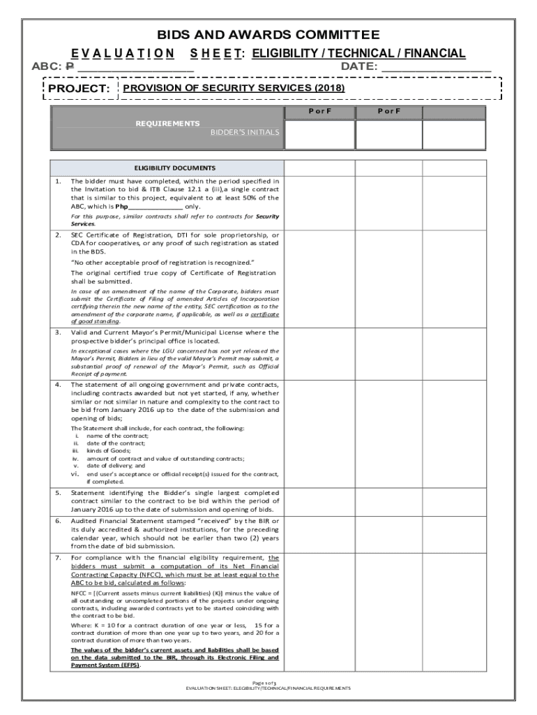 EVALUATIONS H E E T: ELIGIBILITY / TECHNICAL / FINANCIAL ABC: P ___