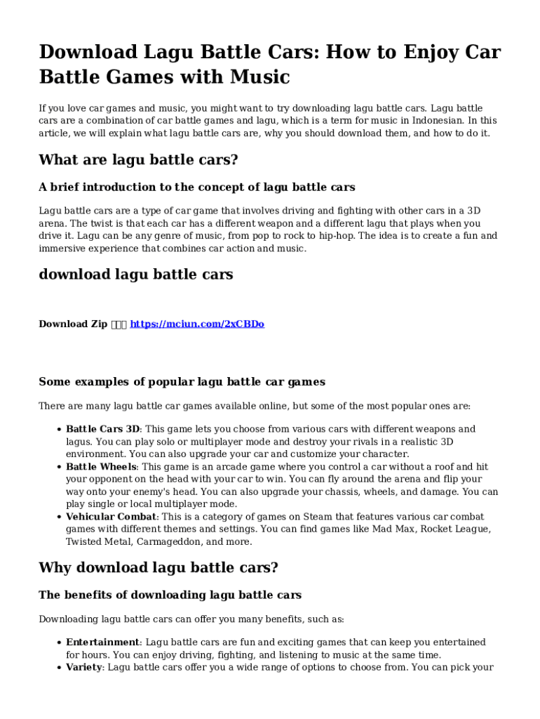 Download Lagu Battle Cars: How to Enjoy Car Battle Games with Music If you love car games and music, you might want to try downloading lagu battle cars. Lagu battle cars are a combination of car battle