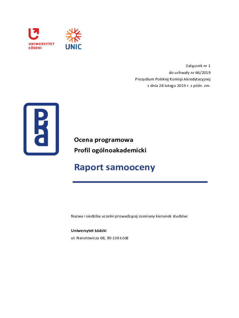 Zacznik nr 1 do uchway nr 66/2019 Prezydium Polskiej Komisji Akredytacyjnej z dnia 28 lutego 2019 r. z pn. zm.Ocena programowa Profil oglnoakademickiRaport samoocenyNazwa i siedziba uczelni prowadzcej