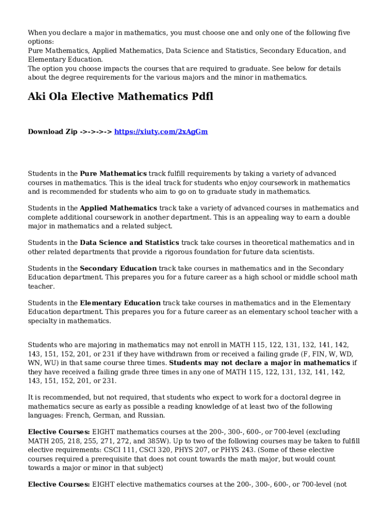 Elective Mathematics Options for Majors: A Guide to Aki Ola