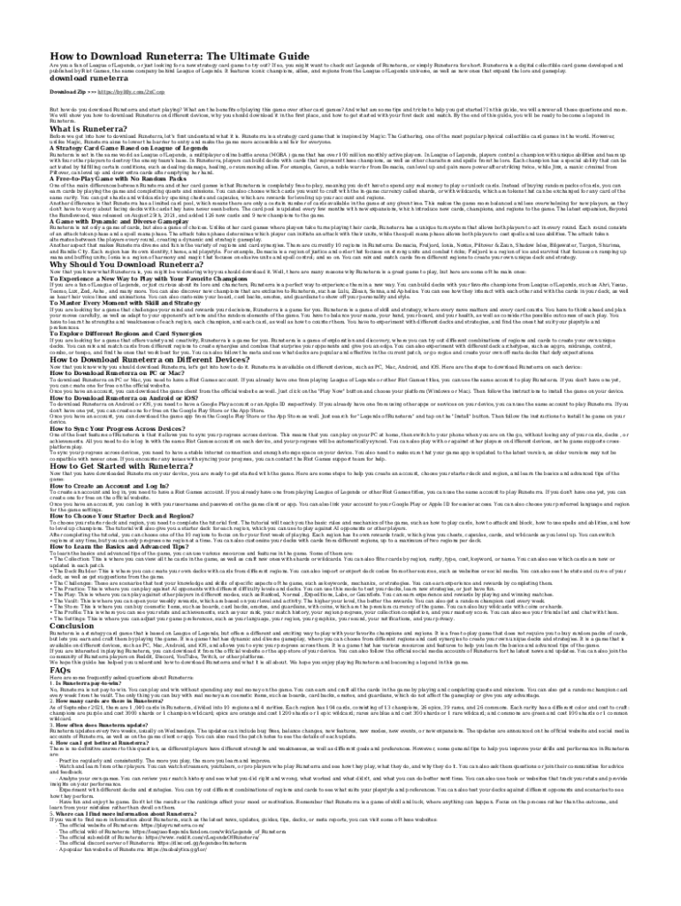 How to Download Runeterra: The Ultimate Guide Are you a fan of League of Legends, or just looking for a new strategy card game to try out? If so, you might want to check out Legends of Runeterra,