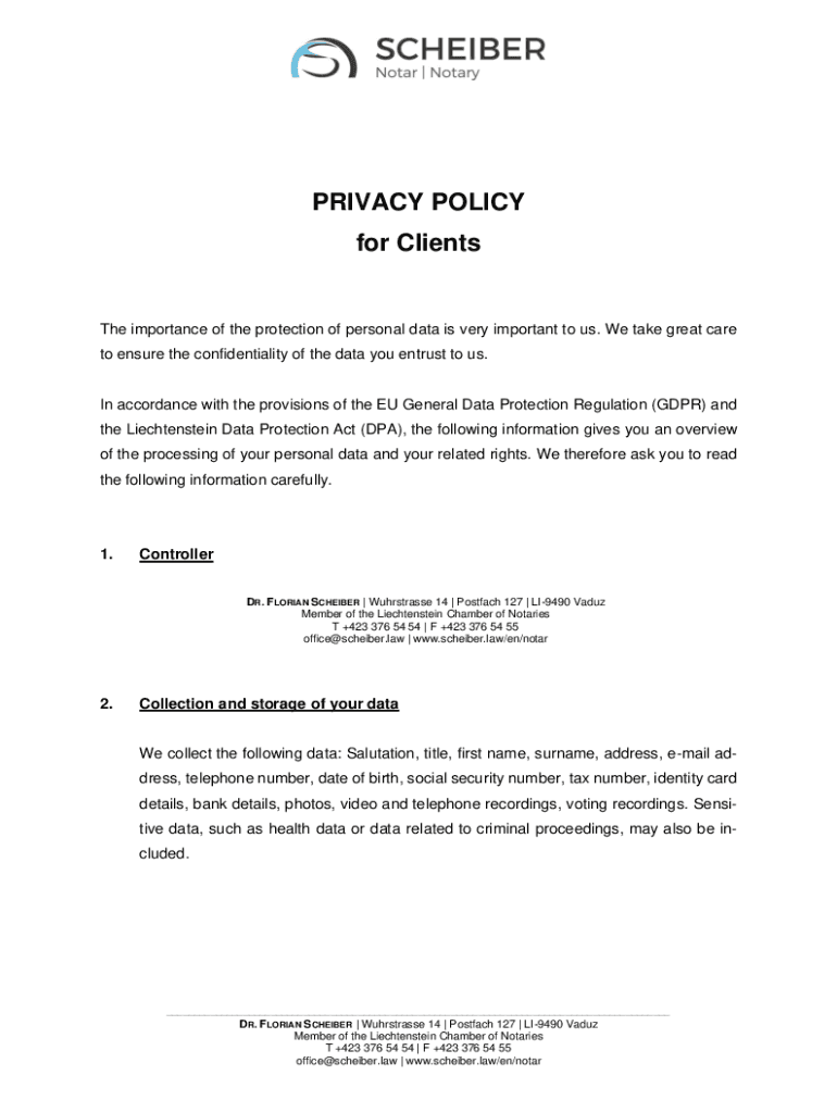 PRIVACY POLICY for ClientsThe importance of the protection of personal data is very important to us. We take great care to ensure the confidentiality of the data you entrust to us.In accordance with