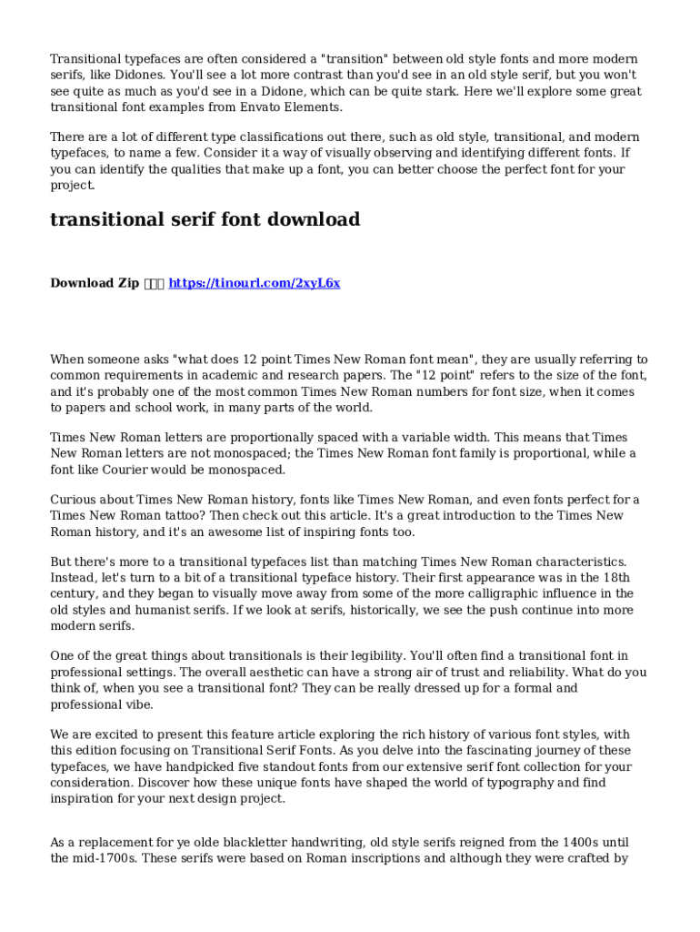 Transitional typefaces are often considered a \”transition\” between old style fonts and more modern