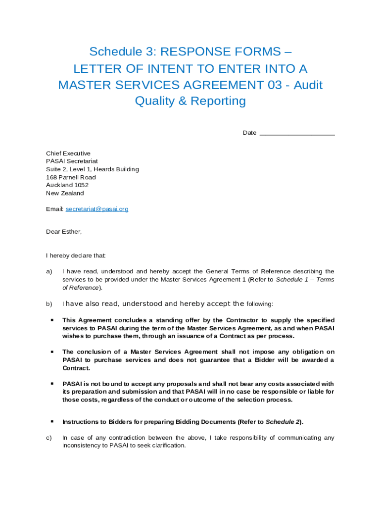 What is Letter of Intent to Enter Into a Master Services Agreement Form?