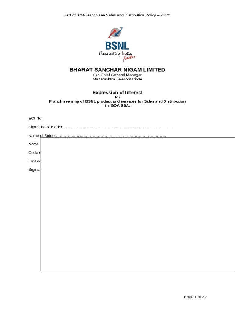 The Name of the franchisee area for which EOI is being submitted is a writable document that has to be filled-out and signed for specified needs. Next, it is provided to the relevant addressee in order to provide specific information and data. The completion and signing can be done manually in hard copy or via a trusted application e. g. PDFfiller. Such tools help to fill out any PDF or Word file without printing out. While doing that, you can edit it for your requirements and put a legal electronic signature. Once done, the user sends the Name of the franchisee area for which EOI is being submitted to the respective recipient or several ones by email and even fax. PDFfiller includes a feature and options that make your Word form printable. It has different options for printing out appearance. No matter, how you file a form after filling it out - in hard copy or electronically - it will always look professional and organized. To not to create a new writable document from the beginning all the time, turn the original document as a template. Later, you will have an editable sample.
