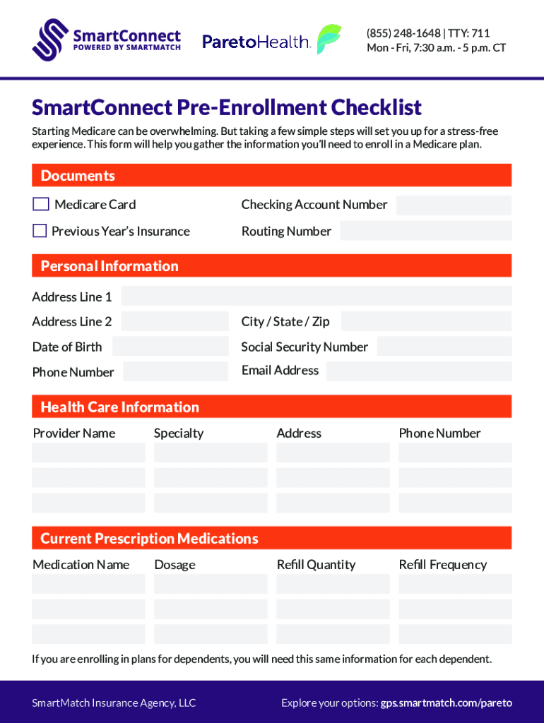 (855) 2481648 | TTY: 711 Mon Fri, 7:30 a.m. 5 p.m. CTSmartConnect PreEnrollment Checklist Starting Medicare can be overwhelming. But taking a few simple steps will set you up for a stressfree experience.