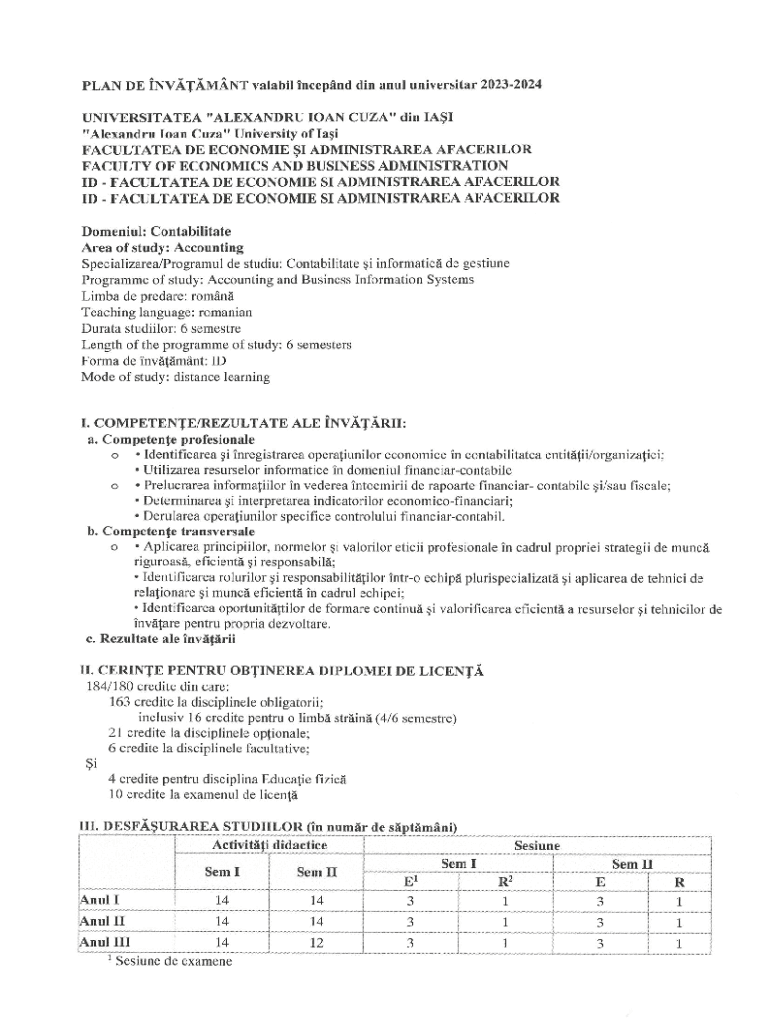 PLAN DE INVATAMANT valabil Incepnd din anul universitar 20232024 UNIVERSITATEA ALEXANDRU JOAN CUZA din 1A51 Alexandru loan Cuza University of lai FACULTATEA DE ECONOMIE I ADMINJSTRAREA AFACERILOR