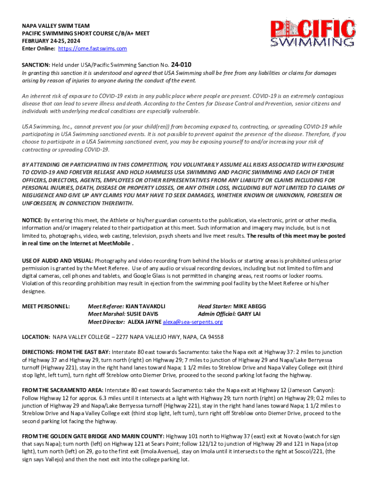 SANCTION: Held under the USA/Pacific Swimming Sanction No. 24010