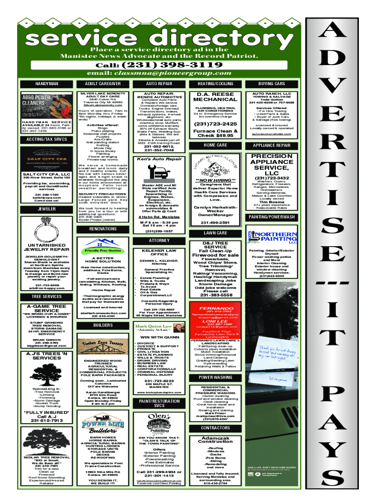 Place a service directory ad in the