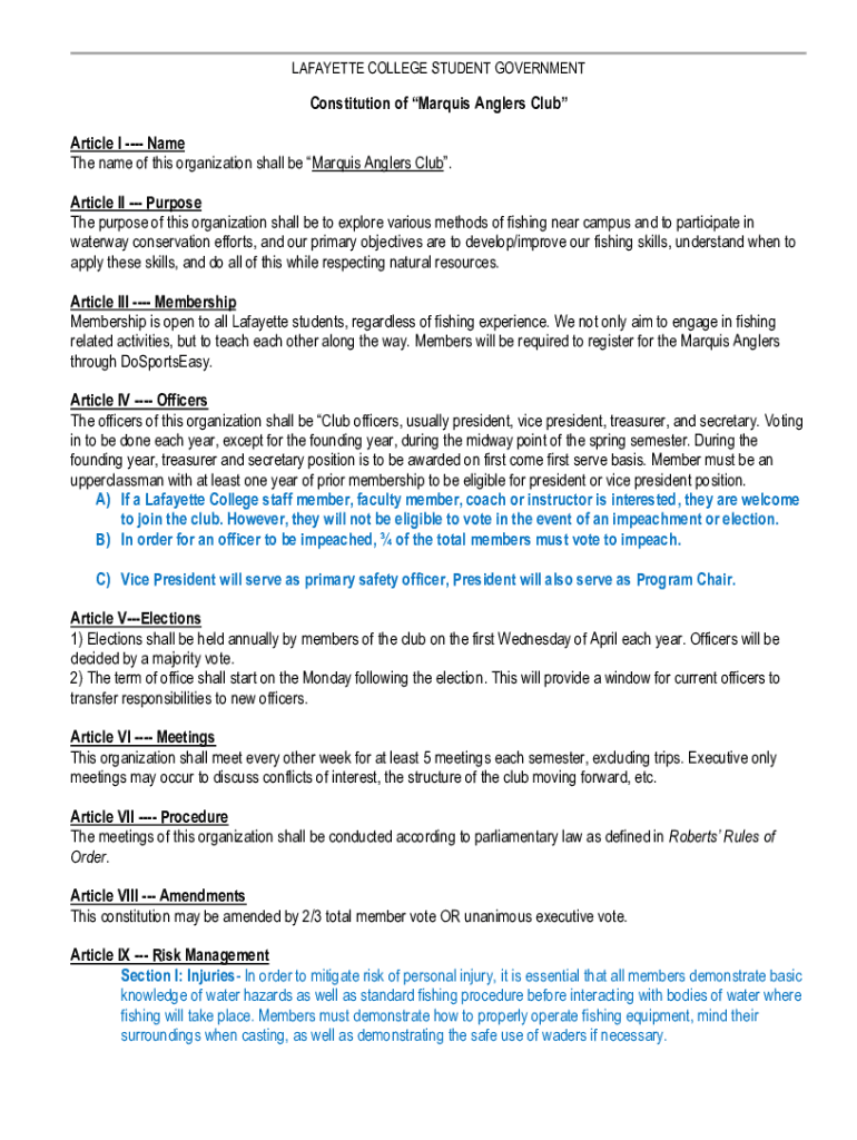 LAFAYETTE COLLEGE STUDENT GOVERNMENT Constitution of Marquis Anglers Club