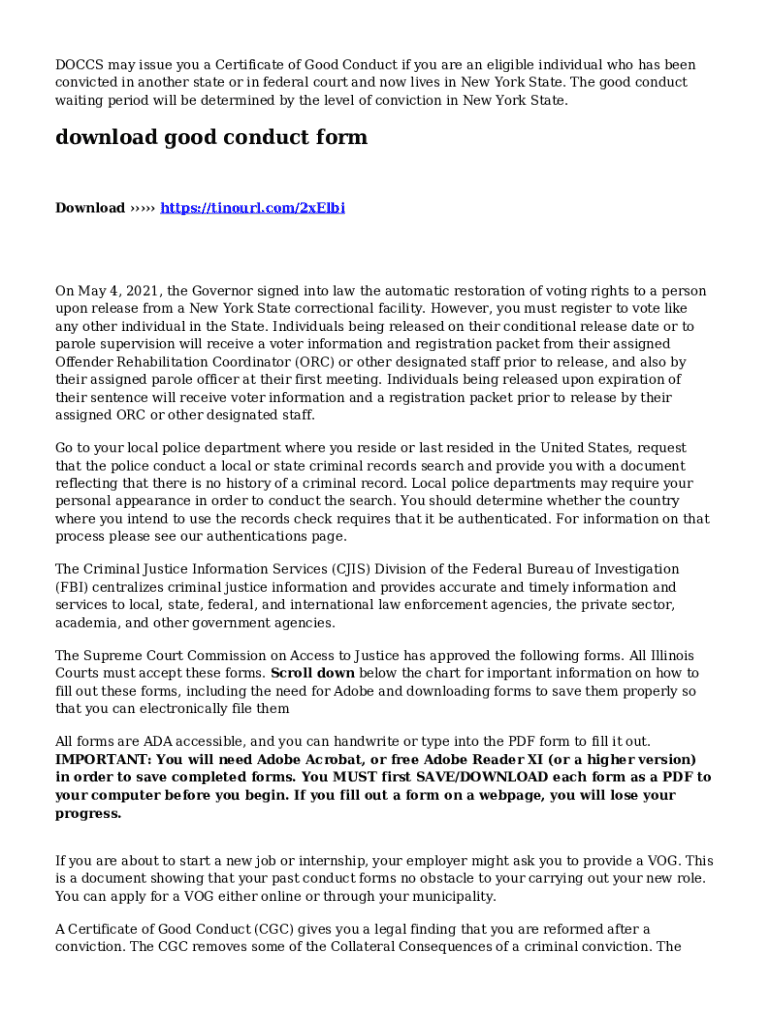 Get the free New York State Certificate of Good Conduct