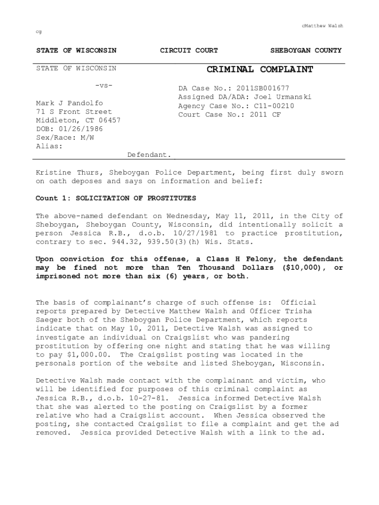 cgSTATE OF WISCONSINCIRCUIT COURTSHEBOYGAN COUNTYCRIMINAL COMPLAINTSTATE OF WISCONSIN