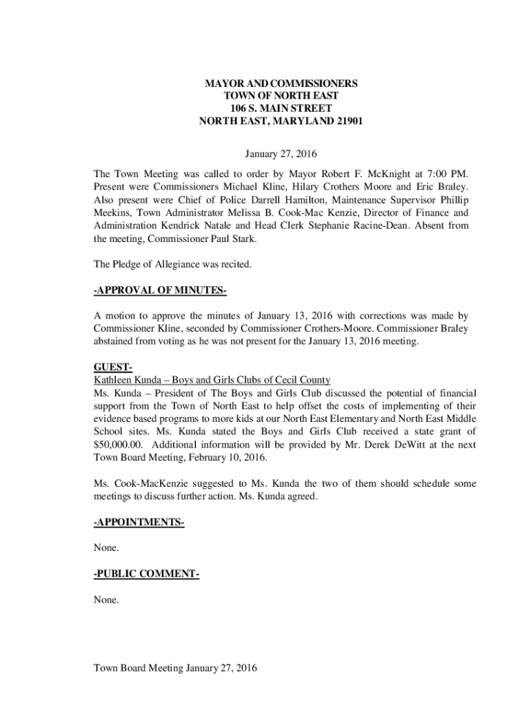 The Town Meeting was called to order by Mayor Robert F. McKnight at 7:00 PM.