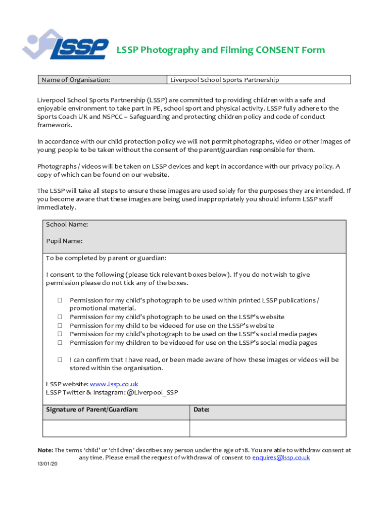 Name of Organization:Liverpool School Sports Partnership Liverpool School Sports Partnership (SSP) are committed to providing children with a safe and