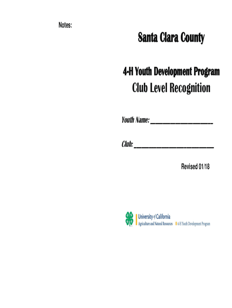 Notes:Santa Clara County 4H Youth Development ProgramClub Level Recognition Youth Name: ___ Club: ___ Revised 01/18Process for adopting Incentives and Recognition Program to 4H club bylaws: At the