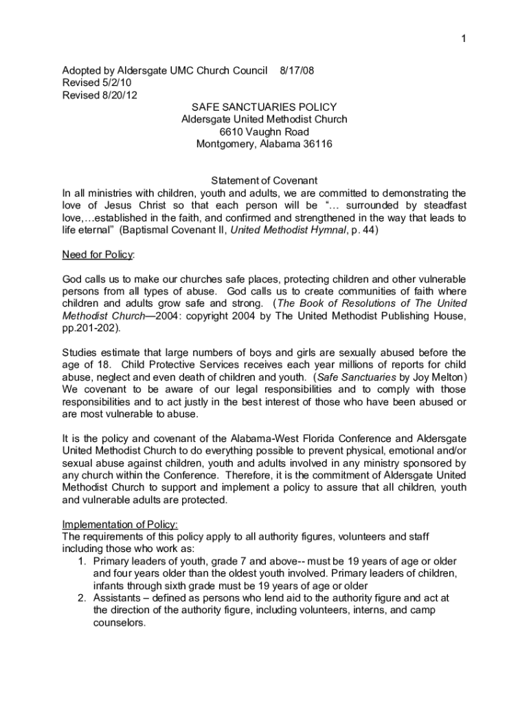 Get the free Aldersgate United Methodist Church Safe Sanctuaries Policy