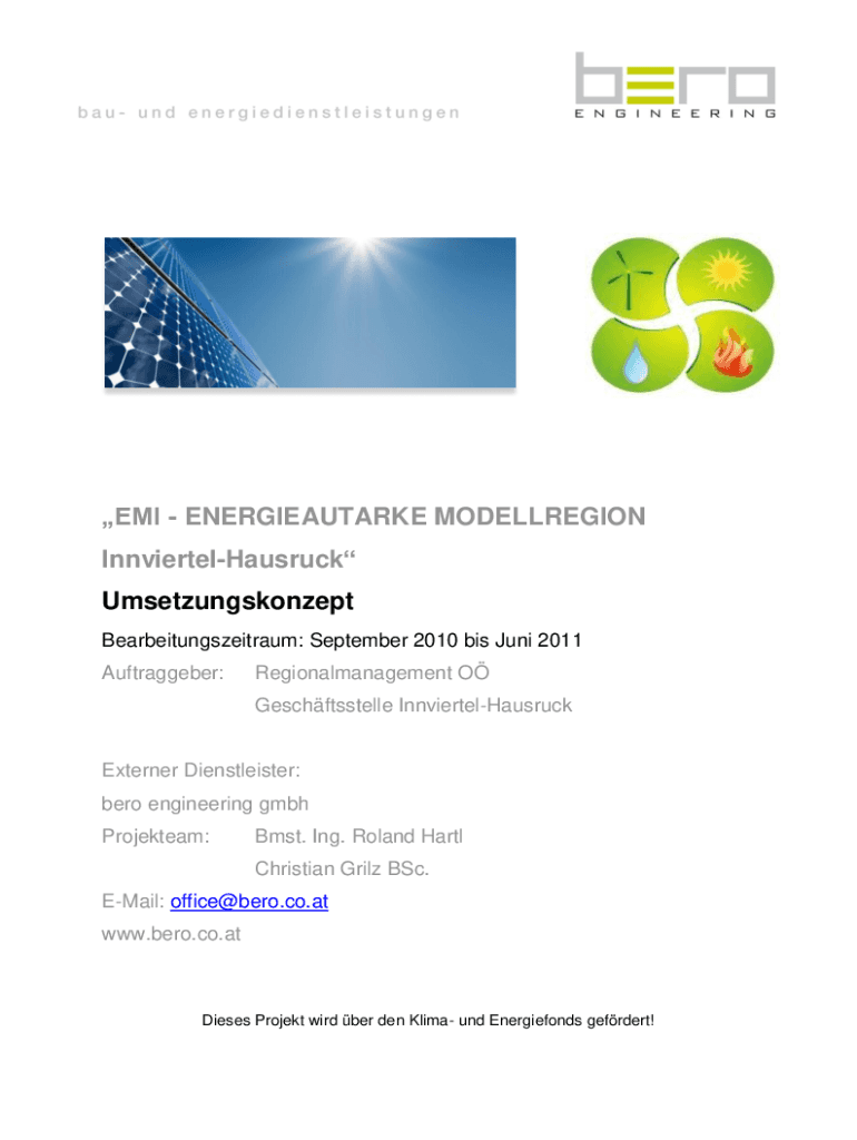 EMI ENERGIEAUTARKE MODELLREGION InnviertelHausruck Umsetzungskonzept Bearbeitungszeitraum: September 2010 bis Juni 2011 Auftraggeber:Regionalmanagement O Geschftsstelle InnviertelHausruckExterner