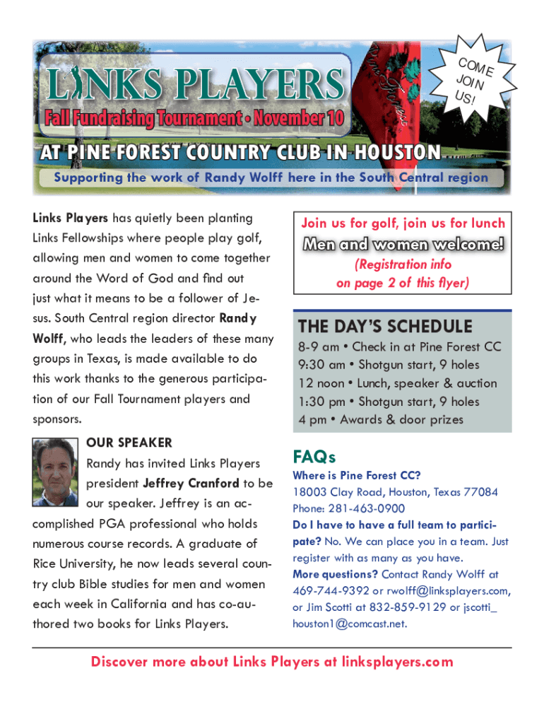 L NKS PLAYERSCOM JOIN E US!Fall Fundraising Tournament November 10 AT PINE FOREST COUNTRY CLUB IN HOUSTON Supporting the work of Randy Wolff here in the South Central region Links Players has quietly