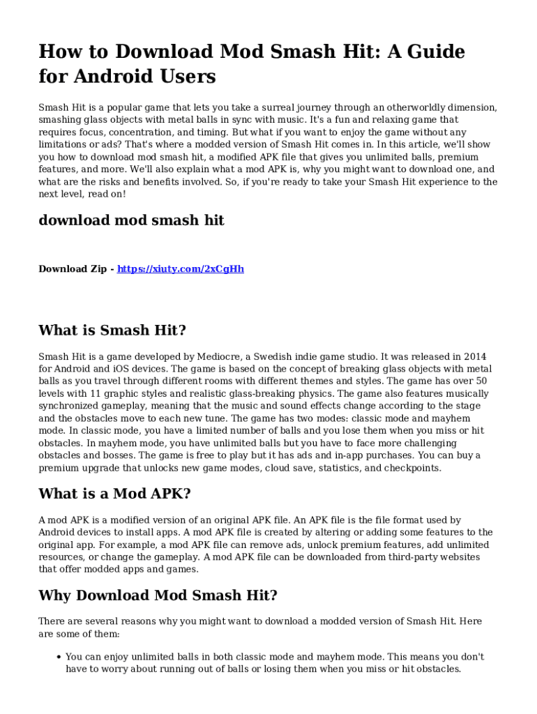 Get the free How to Download Mod Smash Hit: A Guide for Android Users