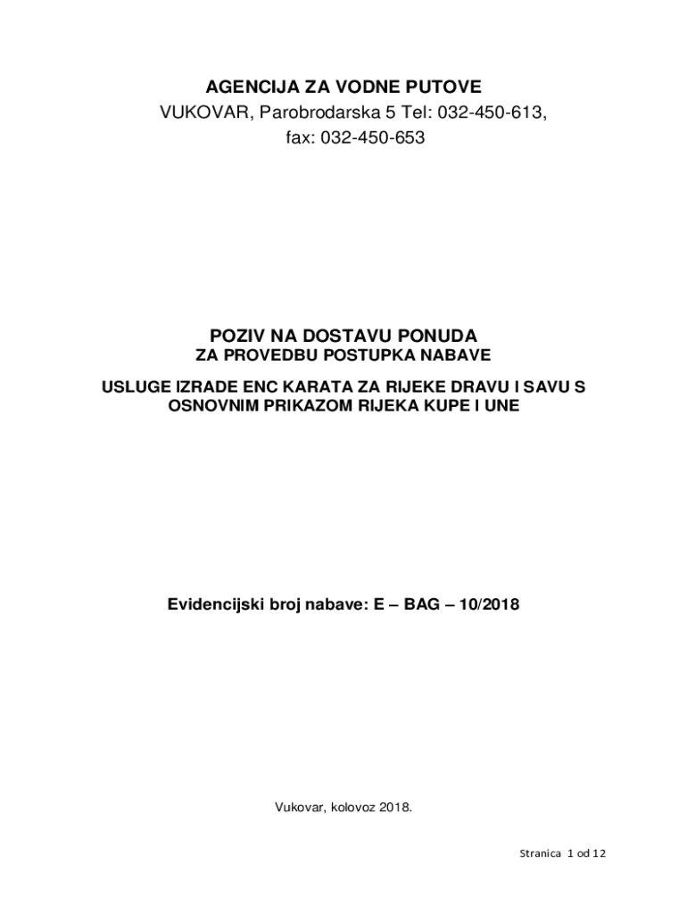 AGENCIJA ZA VODNE PUTOVE VUKOVAR, Parobrodarska 5 Tel: 032450613, fax: 032450653POZIV NA DOSTAVU PONUDA ZA PROVEDBU POSTUPKA NABAVE USLUGE IZRADE ENC KARATA ZA RIJEKE DRAVU I SAVU S OSNOVNIM PRIKAZOM