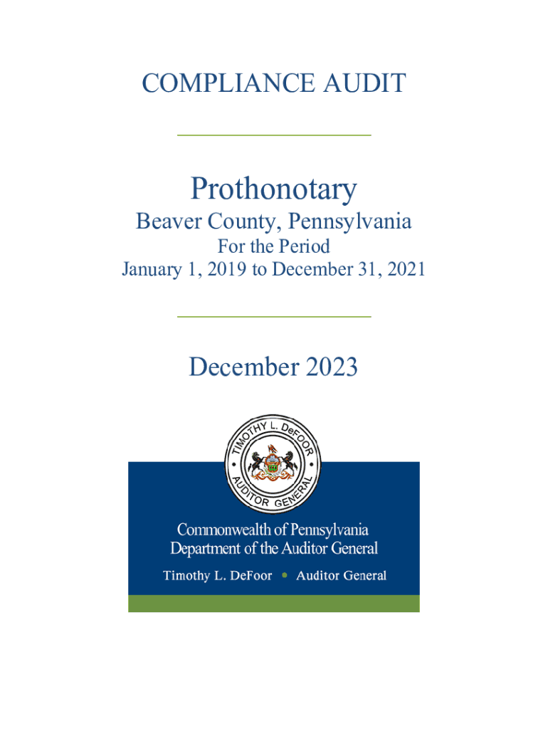 COMPLIANCE AUDIT___ ProthonotaryBeaver County, PennsylvaniaFor the Period January 1, 2019 to December 31, 2021___ December 2023The Honorable Pat Browne Secretary Pennsylvania Department of Revenue