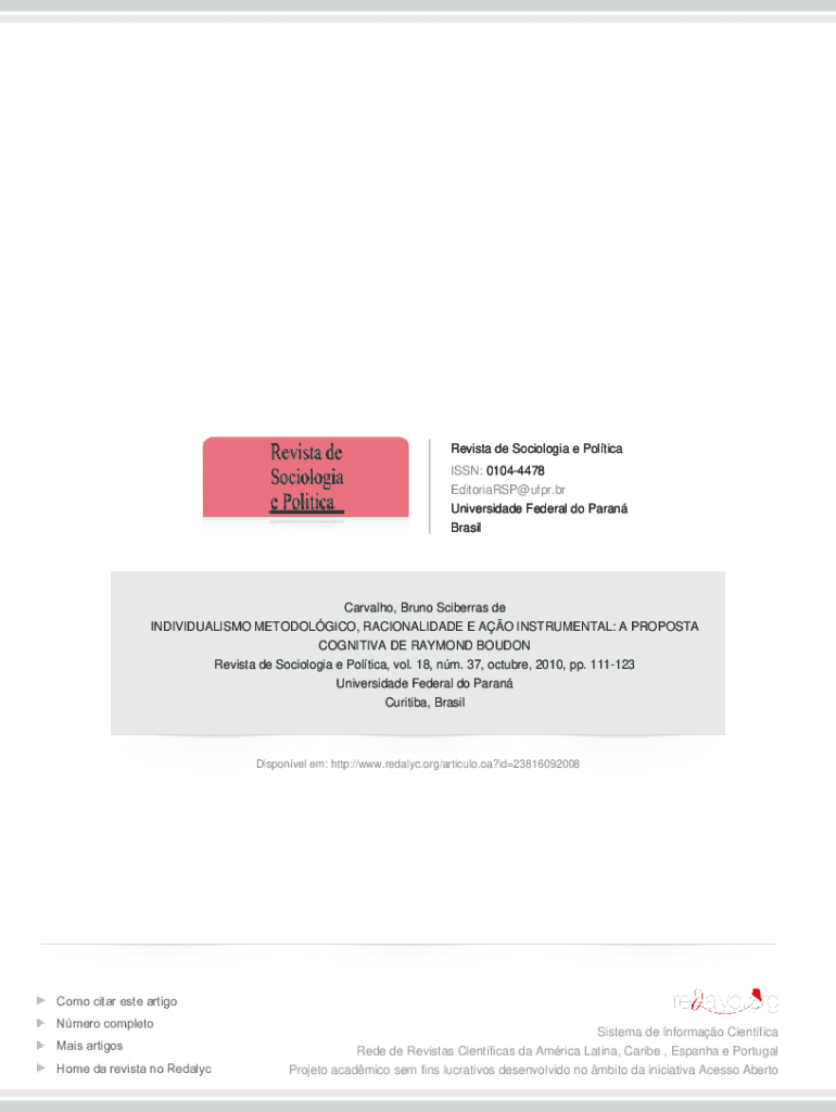 Obtenha o gratuito Redalyc.INDIVIDUALISMO METODOLGICO, RACIONALIDADE E AO INSTRUMENTAL. INDIVIDUA...