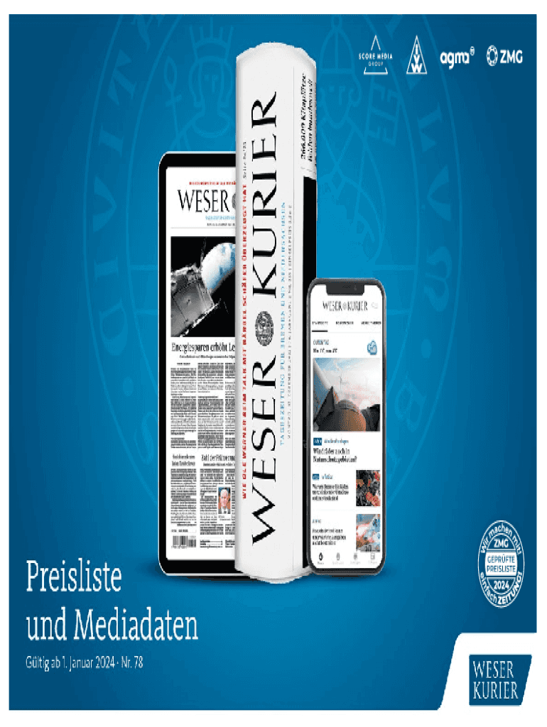 Wichtige Informationen Verlag Bremer Tageszeitungen AG Martinistrae 43 28195 Bremen www.weserkurier.dePreisliste und Mediadaten Nr.78(Preisangaben in Euro zzgl. MwSt.)AuftragsService Tel. 0421/36714210