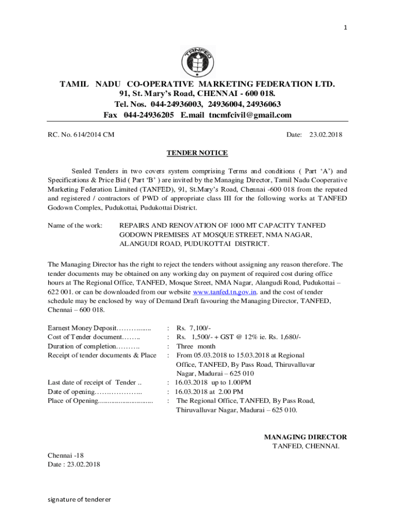 RC. No. 614/2014 CMD ate:23.02.2018TENDER