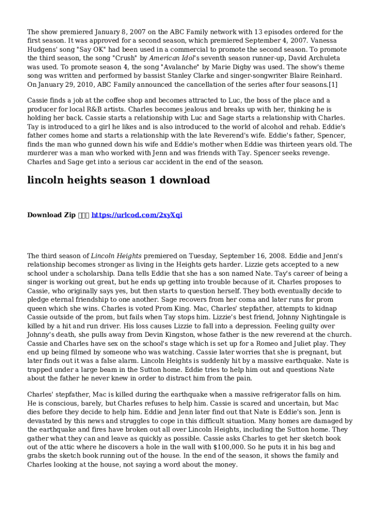 Lincoln Heights Tv Series is not the form you're looking for?Search for another form here.