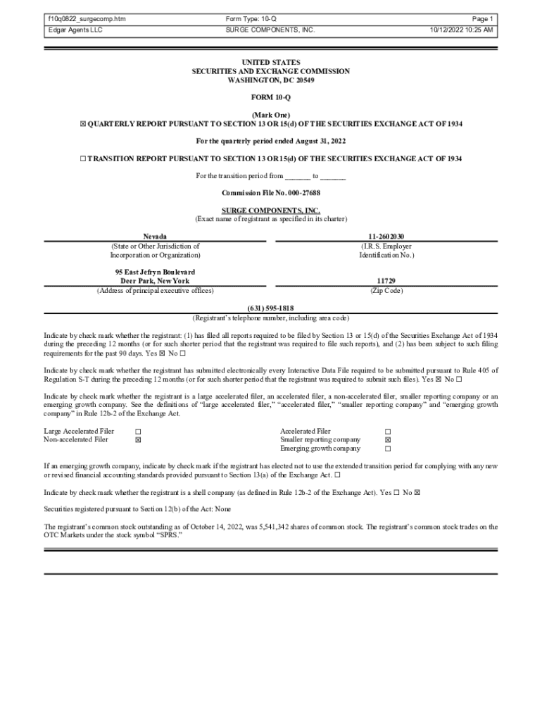 F10q0822_surgecomp.htmForm Type: 10QEdgar Agents LLCSURGE COMPONENTS, INC.Page 1