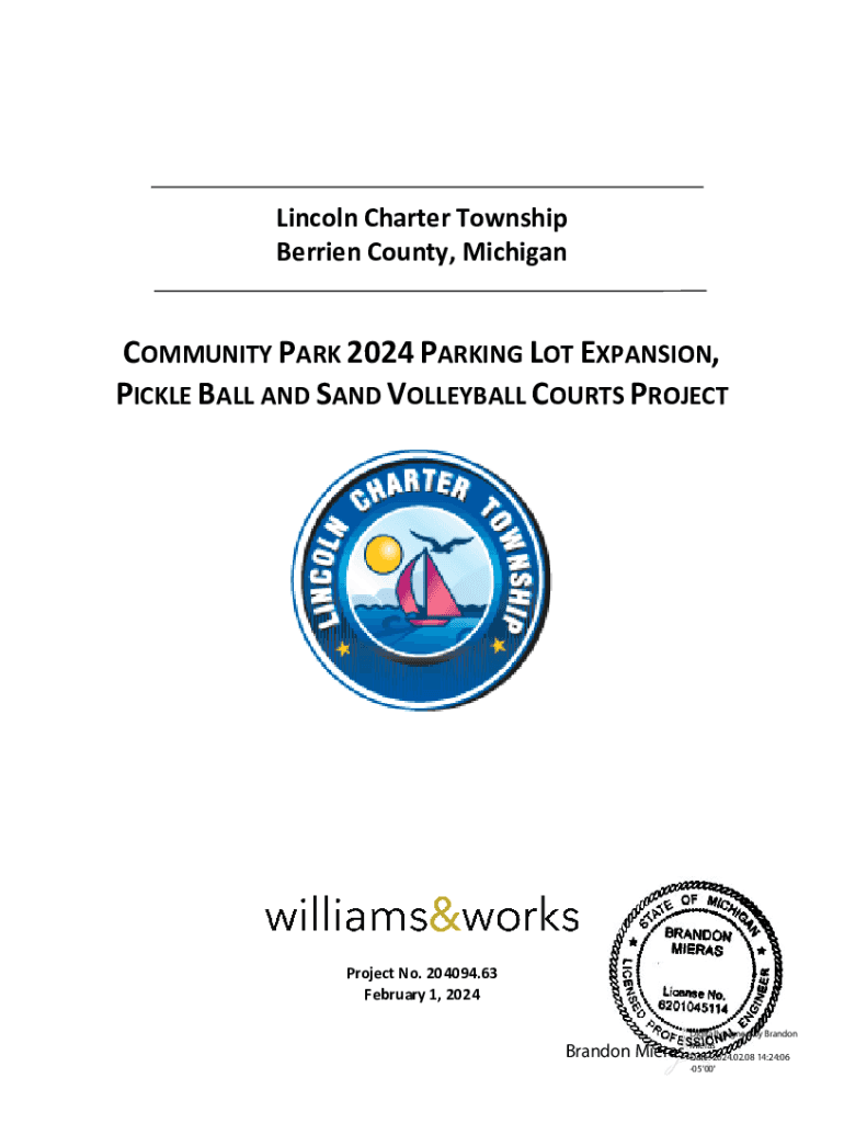 Lincoln Charter Township Berrien County, MichiganCOMMUNITY PARK 2024 PARKING LOT EXPANSION, PICKLE BALL AND SAND VOLLEYBALL COURTS PROJECTProject No. 204094.63 February 1, 2024Brandon MierasDigitally