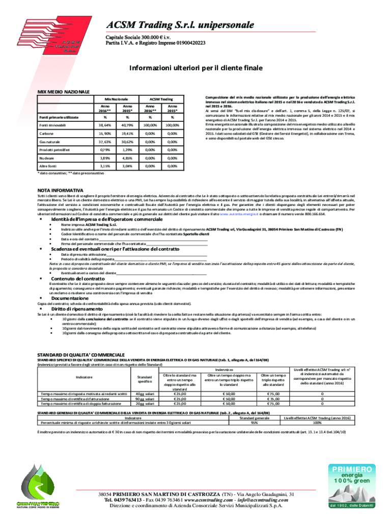 Ottieni il gratuito NOTA INFORMATIVA PER IL CLIENTE FINALE
