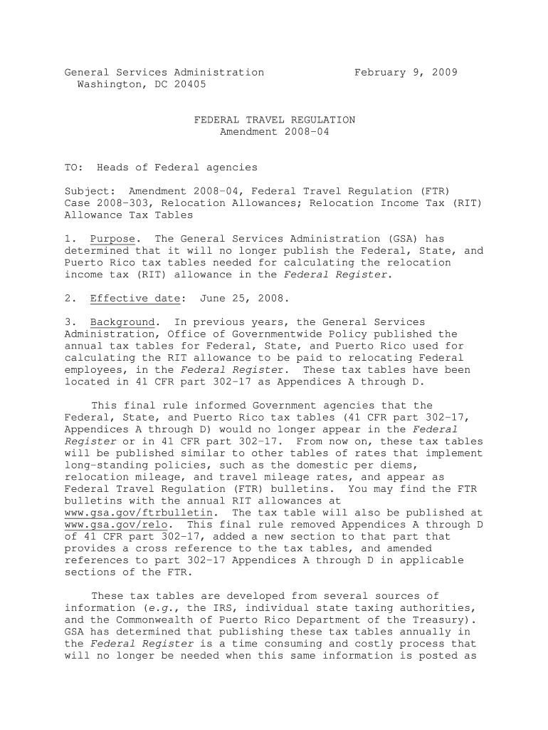 General Services Administration Washington, DC 20405 February 9, 2009, FEDERAL TRAVEL REGULATION Amendment 200804 TO: Heads of Federal agencies Subject: Amendment 200804, Federal Travel Regulation