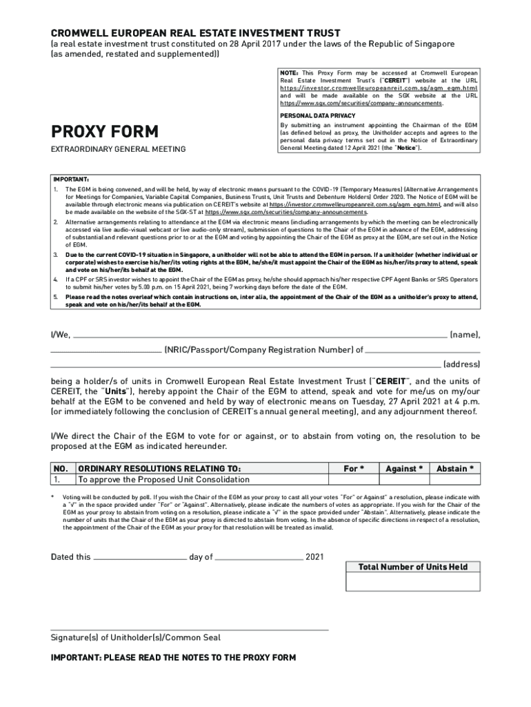 CROMWELL EUROPEAN REAL ESTATE INVESTMENT TRUST(a real estate investment trust constituted on 28 April 2017 under the laws of the Republic of Singapore (as amended, restated and supplemented)) NOTE: