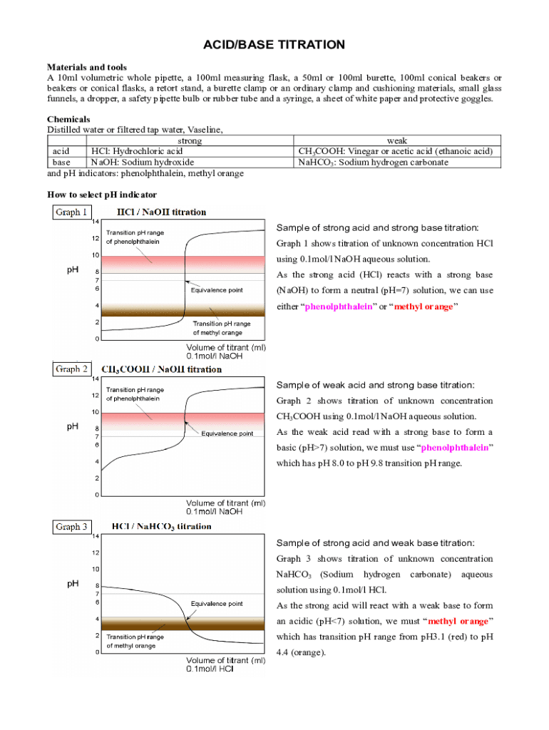 Get the free Detailed Instructions For Acid-base Titration Lab Report