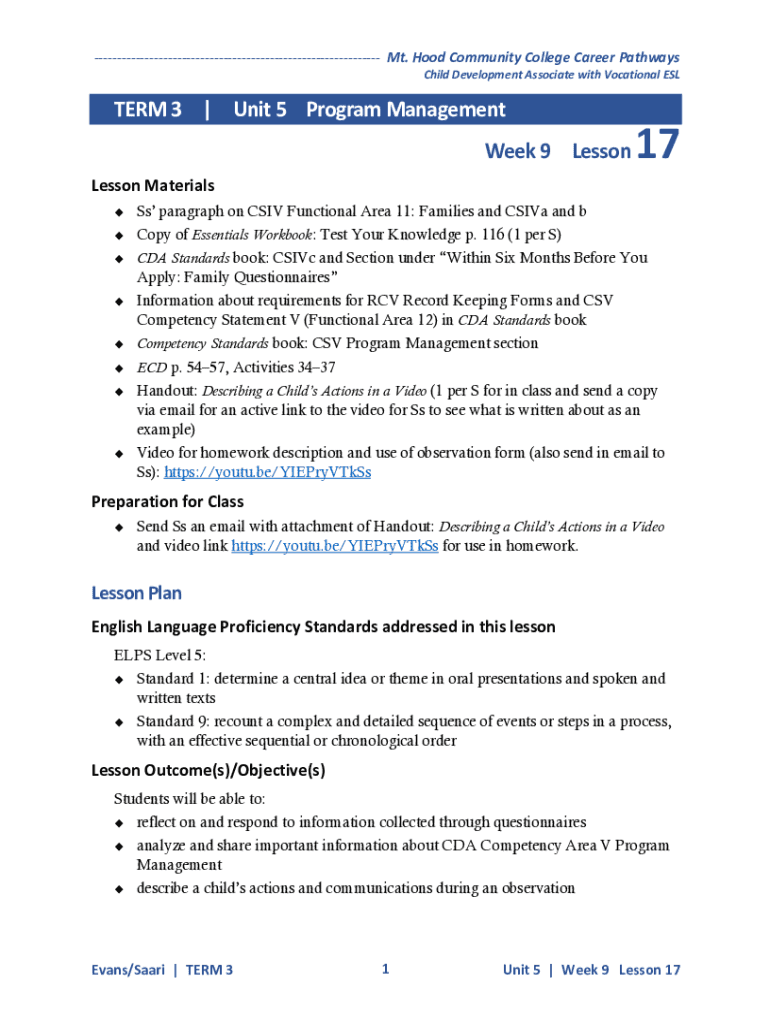 Get the free TERM 3Unit 5 Program Management Week 9 Lesson 17