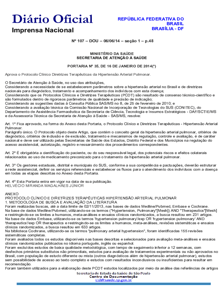 Dirio Oficial Imprensa NacionalREPBLICA FEDERATIVA DO BRASIL BRASLIA DF.N 107 DOU 06/06/14 seo 1 p.48 MINISTRIO DA SADE SECRETARIA DE ATENO SADE PORTARIA N 35, DE 16 DE JANEIRO DE 2014(*) Aprova o