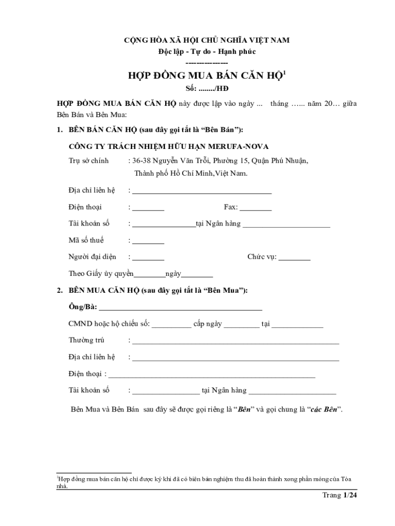 CNG HA X HI CH NGHA VIT NAM c lp T do Hnh phc HP NG MUA BN CN H1 S: ......../H HP NG MUA BN CN H ny c lp vo ngy ... Bn Bn v Bn Mua:thng ... nm 20 gia1. BN BN CN H (sau y gi tt l Bn Bn): CNG TY TRCH