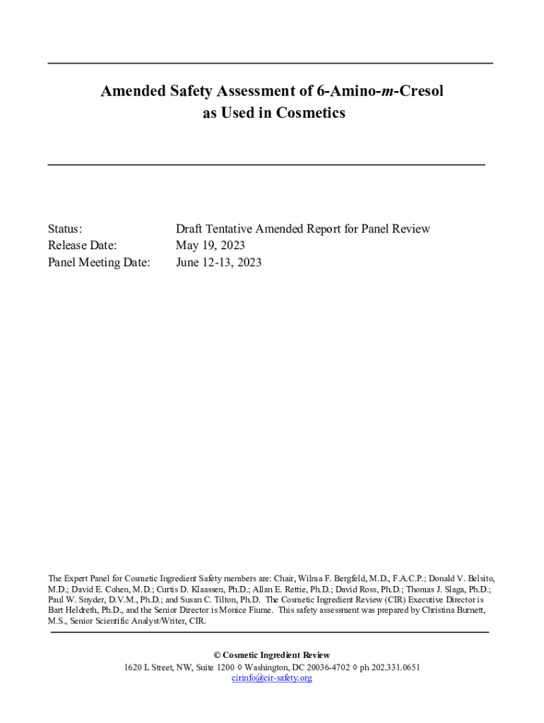 Amended Safety Assessment of 6AminomCresol as Used in CosmeticsStatus: Release Date: Panel Meeting Date:Draft Tentative Amended Report for Panel Review May 19, 2023 June 1213, 2023The Expert Panel