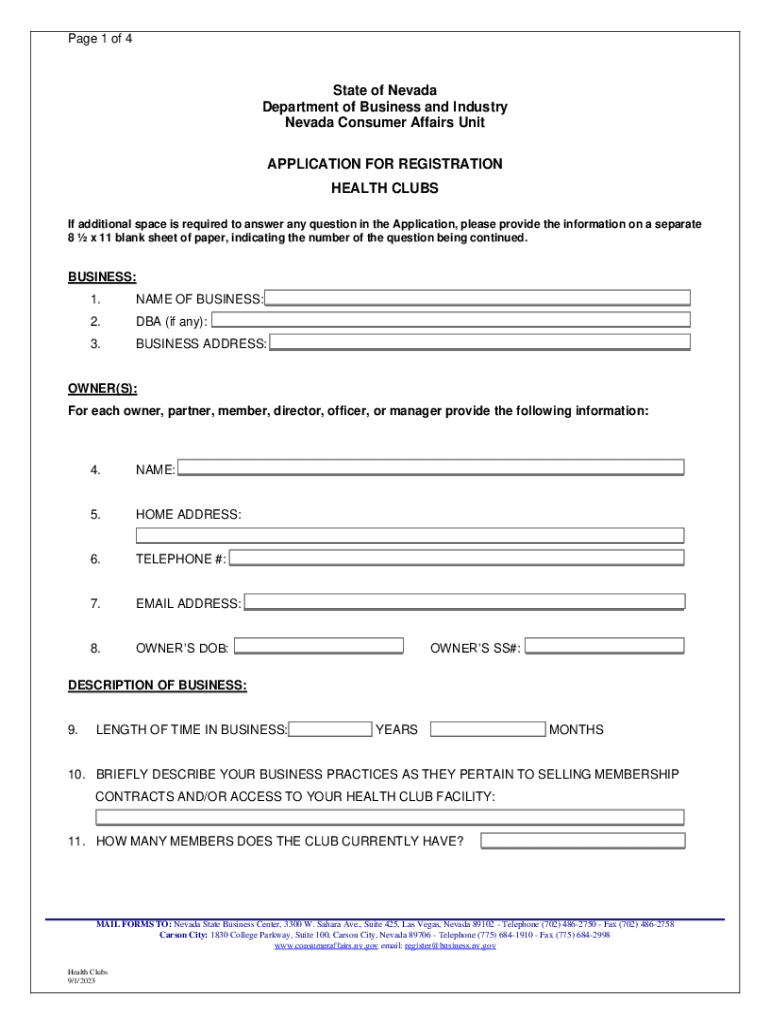 State of Nevada Department of Business and Industry Nevada Consumer Affairs Unit Application for Registration Instructions (Health Club Owner Registration) Determine whether you are subject to the