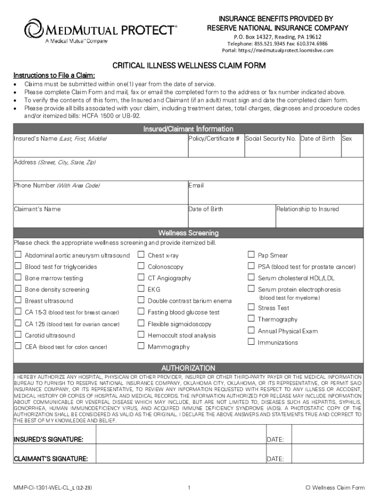 Get the free Accident and Health Screening Claim Form