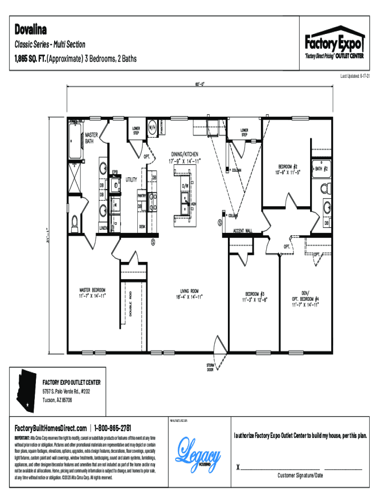, MSa, AZlle, NCDovalinaClassic Series Multi Section 1,865 SQ. FT. (Approximate) 3 Bedrooms, 2 Baths Last Updated: 61721Farmington, NMMHOM, Mesa, AZHome Outlet AZMcMinnville, ORKingman, AZLake City,