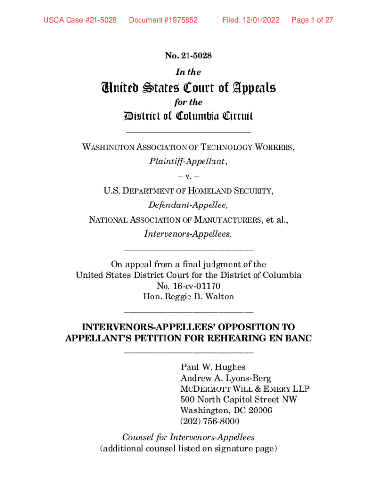 USCA Case #215028Document #1975852Filed: 12/01/2022Page 1 of 27No. 215028In theUnited States Court of Appeals for theDistrict of Columbia Circuit ___WASHINGTON ASSOCIATION OF TECHNOLOGY WORKERS, PlaintiffAppellant,